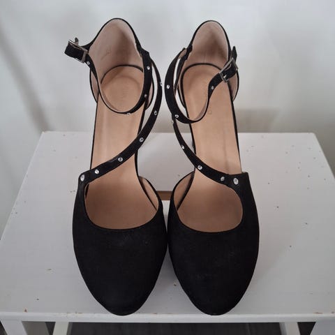 Kauniit käyttämättömät korkokengät kauden juhliin. Pitsimäinen ulkoasu. Mustat, korko n. 7 cm. Myydään tarpeettomana.