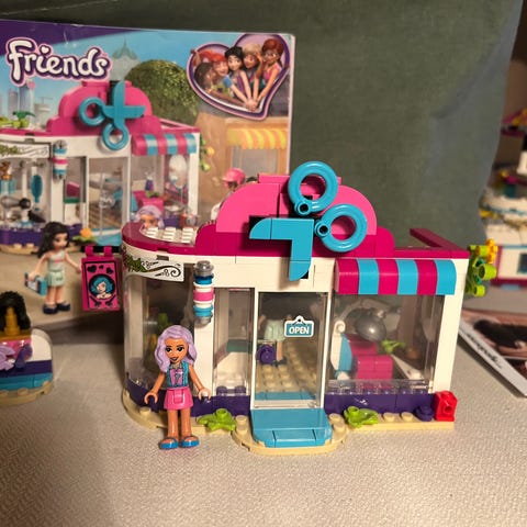 LEGO Friends hiussalonki leikkisetti sisältää pienoismallin hiussalongista, jossa on ikkunoita ja ovi, sekä kaksi hahmoa. Sarja on suunniteltu lasten leikkeihin ja kehittää luovuutta ja mielikuvitusta. Joitakin osia voi puuttua.