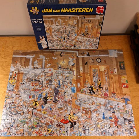Jan van Haasteren palapeli, jossa on 1000 palasta. Palapelin kuva-aiheena on yksityiskohtainen ja värikäs kaupunkinäkymä, jossa on paljon pieniä hahmoja ja tapahtumia.