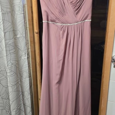Punainen vuoritettu sifonkimekko / tunika (ompelijan tekemä). Kellotettu malli eli mahtuu kaikille. Olasta helmaan noin 83cm