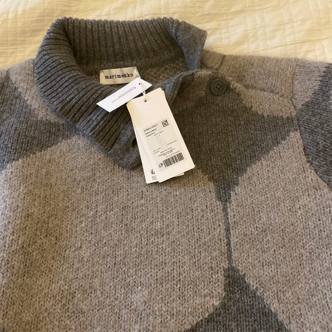 Myydään uudenveroinen Marimekko Kioski Louhe Kivet -neulepaita koossa M. Nouto Etu-Töölöstä tai lähetys.