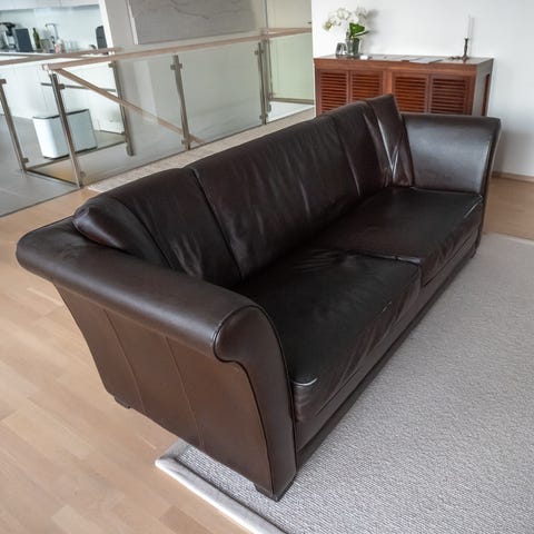 Englannista tuotu kolmen istuttava muhkea sohva sekä kaksi muhkeaa nojatuolia.