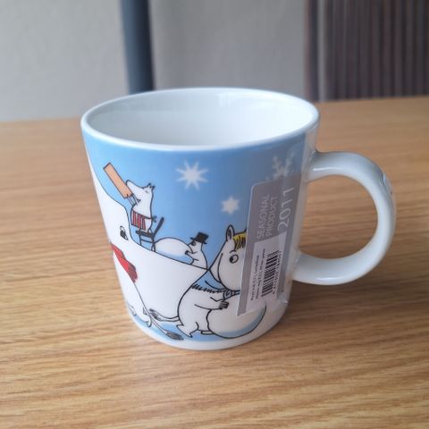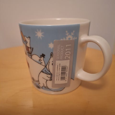 Muki on virheetön, mutta tarra on repeytynyt nouto tai postitus.