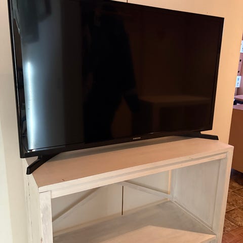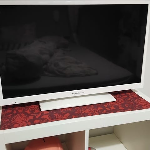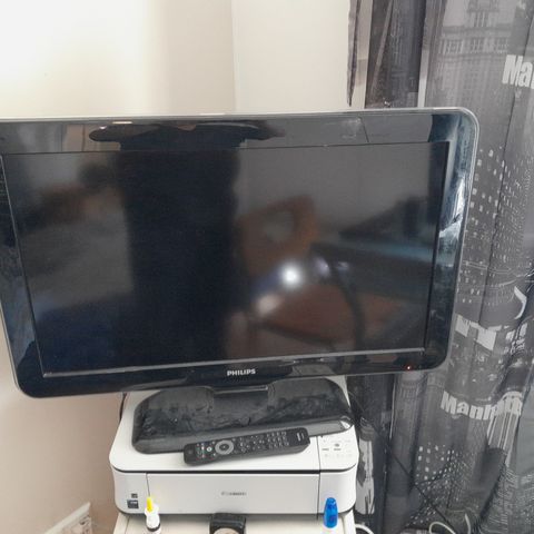Tästä uuteen kotiin ylimääräiseksi jäänyt 32 tuuman telkkari + kaukosäädin.