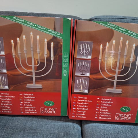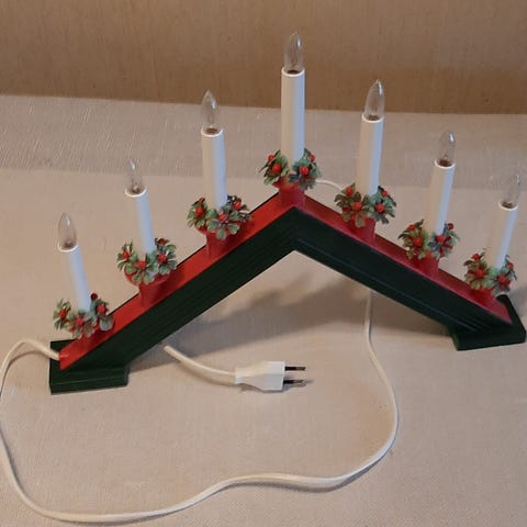 Ehjä hyväkuntoinen Mikael joulukynttelikkö alkuperäisessä pakkauksessa, viisi lamppua,