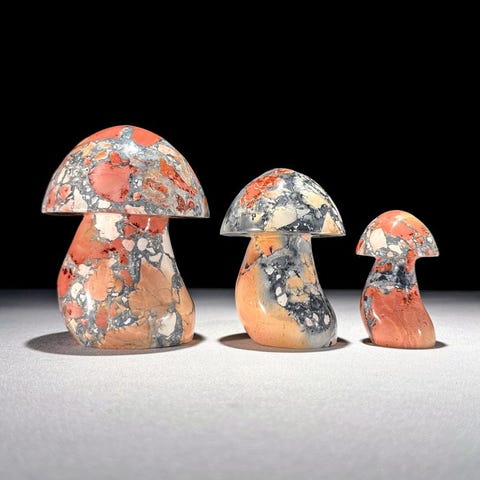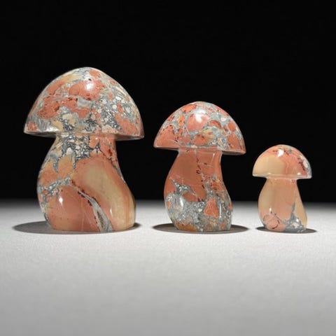 Mahtava setti kolmesta sienimäisestä keltaisesta maligano jasperista.