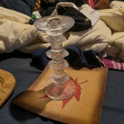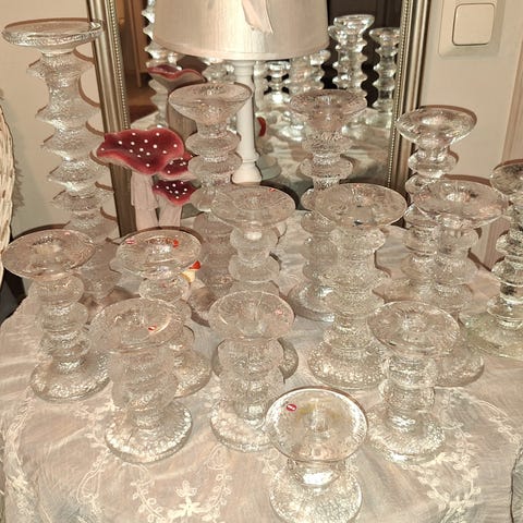 Iittala Festivo kynttilänjalka kirkkaasta lasista. Kynttilänjalka on suunniteltu koristeelliseen käyttöön ja se sopii erilaisiin sisustustyyleihin. Materiaali on lasia, ja muotoilu sisältää useita pyöreitä elementtejä, jotka muodostavat jalustan ja pidikkeen kynttilälle.