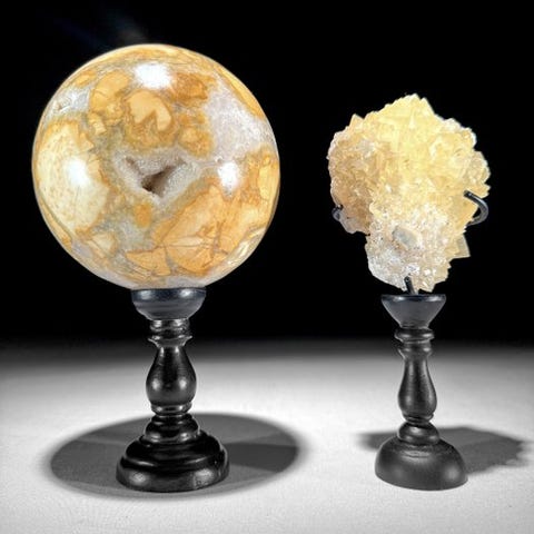Upea pari punaisia Maligano Jasper -kiviä. Pallot räätälöidyissä telineiss
