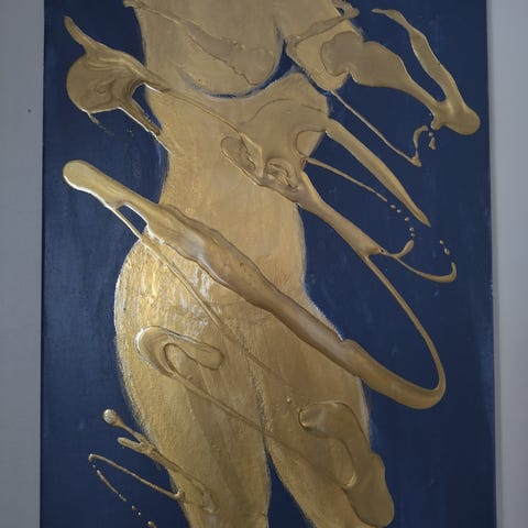 Upea kolmen canvas-taulun kokonaisuus, jossa ylellinen kulta kohtaa syvän tummansinisen. Sarja tuo tilaan modernia ilmettä ja ripauksen luksusta.