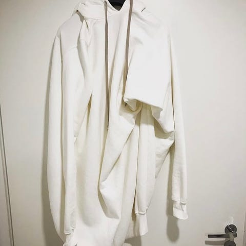 Vähän käytetty. Tässä hupparissa hihojen sauma on jätetty auki ja sen on tarkoitus purkautua kuten oikealle hihalle on käynyt. Muutoin kunto on moitteeton.