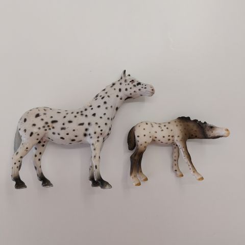 Hyväkuntoiset Schleich Knabstrupper hevoset. Ori vm 2010 ja tamma vm 2006. Pientä maalikuluma,
