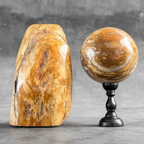 Petrified Wood on mineraalinen pala puuta, joka on muodostunut, kun puut kaatuivat ja peittyivät maaperän tai hiekan kerrokseen. Usein tämä tapahtuu luonnonkatastrofin seurauksena. Petrified Woodin värit riippuvat maaperän tai hiekan mineraaleista. Jokainen mineraali luo oman värinsä. 'Petrifikaatio'-prosessi varmistaa, että kaikki ominaisuudet, kuten solmut, kuori ja vuosirenkaat, säilyvät. Mahdollinen kaukaisen menneisyyden mätänemisprosessi voi johtaa upeisiin kristallimuodostelmiin, usein monivärisinä.