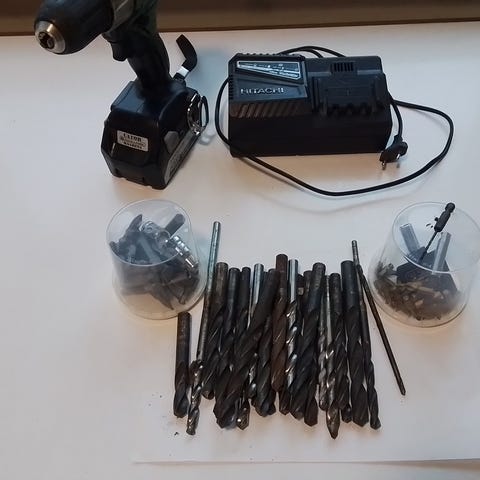 Hitachi DS 14DSAL akkukäyttöinen porakone, mukana Hitachi UC 18YRSL laturi. Porakoneen ja laturin tekniset tiedot näkyvät kuvissa.