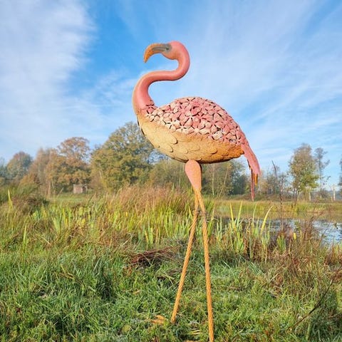 Upea suuri pinkki flamingo. Erittäin koristeellinen puutarhassa tai puutarhassa sijaitsevassa lammikossa. Täydellinen iloisen ulkoilulahjan. Piristää pihaa ja on hauska katseenvangitsija seuraavilla mittojen (+/-):