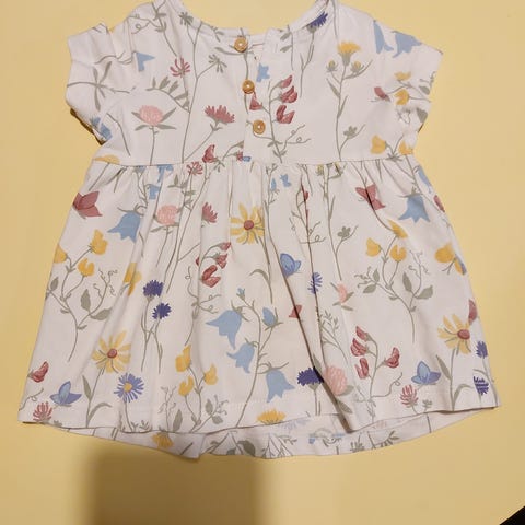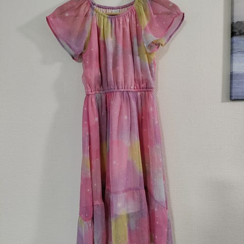 Lindex Kirjava lasten mekko on valmistettu puuvillasta, Mekko on väriltään kirjava ja sopii tytöille. Kokoa ei löydy mekosta, mutta pituusmitta näkyy kuvissa mistä mitattu ja mihin.