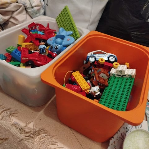 Myydään laatikollinen dubloja, osa meille uutena ostettu, osa käytettynä tulleita. Sis mm. Kaksi kuorma-autoa, helikopteri, ukkeleita, eläimiä, peruspalikoita, junan osia, talon osia.