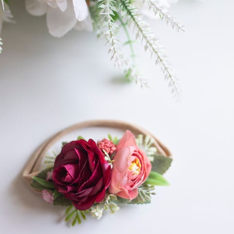 Näyttävä kukkapanta tekokukilla. Molemmin puolin kukitettu.