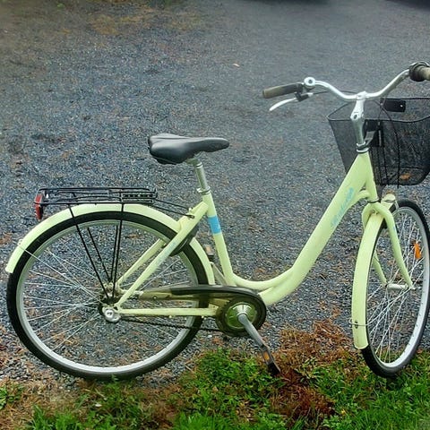 Toimiva pyörä, jossa lukko, käsi- ja jalkajarru, hyvät renkaat, joissa pysyy ilma.