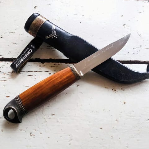 Käyttämätön ja upea marttiinin damastiteräksinen puukko.