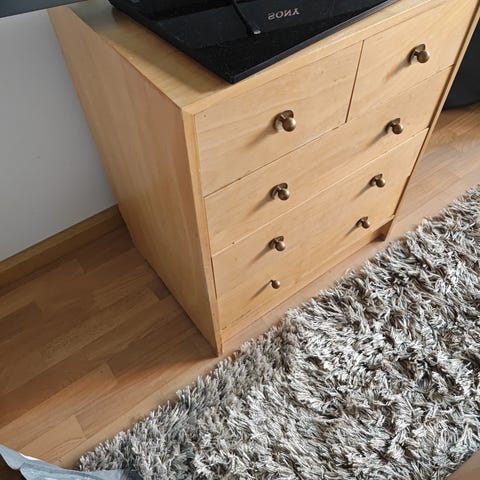 Jämäkkä lipasto tuunaajalle tai heti käyttöön. Kaksi laatikkoa hävinnyt aikojen saatossa.