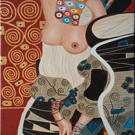 Moderni alkuperäinen Viktoria Brantin maalaus - After Klimt. Kangas pingotettu levylle. Itsellesi tai lahjaksi. Ihanteellinen klassiseen ja nykyaikaiseen sisustukseen. On mahdollista tulla arvostamaan ennen lopullista ostopäätöstä.