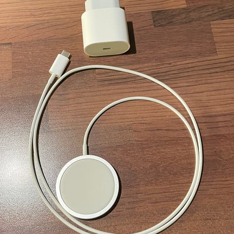Langattomasti lataava latausjohto. MagSafe- ja Qi-yhteensopiva, maksimiteho jopa 25 W. Metrin pituinen latausjohto.