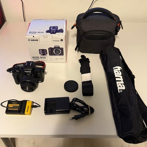 Mukavan kompakti ja erittäin hyväkuntoinen Canon EOS M50 myynnissä. Lasipinnat (sensori, objektiivi, linssi jne.) ei mitään jälkiä ja muutenkin toimii moitteetta. Ulkonäöltäkin käytännössä moitteeton.