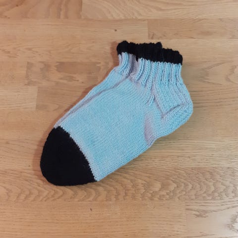 Myydään villasukat (pohjavärinä tummansininen), pohjan pituus 24 cm, varsi n. 16 cm. Vastaavat kokoa 39-40. Neulottu Novitan 7 Veljestä langalla.