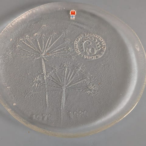 Ei iskemiä tai halkeamia, Käyttökulumaa. Reunassa lasimassan sisään jäänyt yks ilmakupla.