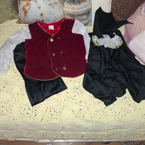 Nukke ja sen vaatetta yms. Nouto tykki/kiviharju.