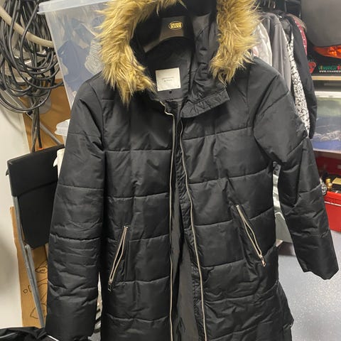Paksu toppatakki, jossa on neljä suurta taskua edessä. Vyötärön leveyttä pystyy säätämään. Olka-helma 70cm, Kainalo-Kainalo 50cm ja hihan pituus 55cm. Materiaali ulkoa polyamidi ja vuori polyesteri.