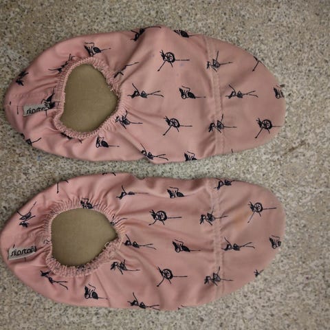 Kahdella käytetyt slipstopin tossut. Kulumaa on kärjissä hieman. Hp. 2e. Nouto lievestuoreelta