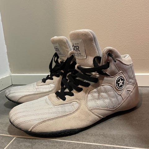Myydään otsikon mukaiset salikengät. Kerran kokeillut ja pestyt, eli täysin uuden veroiset. Ei sopinut omaan nostotyyliin, joten myyn pois nurkista. Erittäin jämäkkä ja tukeva.