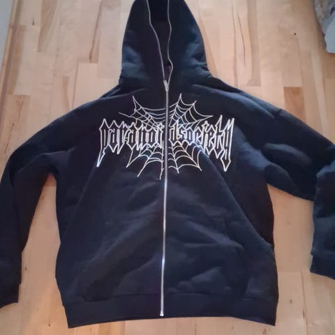 NYC New York Liberty huppari, koko 12. Musta väri ja valkoiset graafiset kuviot. Huppari sisältää vetoketjullisen etuosan ja hupun, jossa on kasvomaski-tyylinen kuviointi.