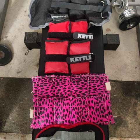 2 x 10 kg painot ja 10 kg kahvakuula.