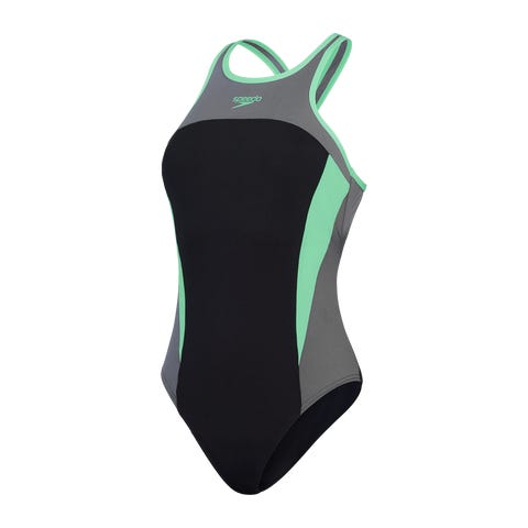 Speedo Womens High Neck Splice Cross back Swimsuit BLACK XL
