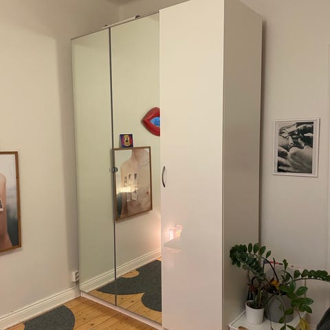 Ajatonta suunnittelua ja modernia toimivuutta. IDANÄS-vaatekaapissa on taittuvat ovet tilan säästämiseksi, ja säädettävän hyllyn ansiosta säilytystilaa voi muokata. Tämä vaatekaappi pitää vaatteistasi huolta vuosia.