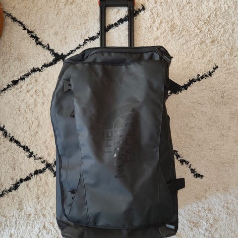 Hyvin palvellut 50 litranen North Facen putkikassi seuraavalle. On ollut kovassa käytössä, oranssissa kankaassa tummia jälkiä jotka ei lähtenyt vesi+mikrokuituliina yhdistelmällä. Kaikki remmit ja vetoketjut ehjiä, kassi on jämäkkää tekoa.