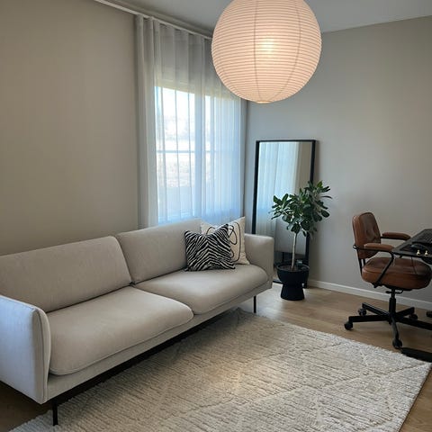 Lähes uudenveroinen. Toiminut vierashuone koristesohvana. Pinta on kulumaton ja istuinosa napakka. Nappi irronnut, joka on tallessa ja helppo kiinnitttää paikalle.