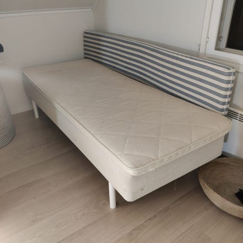 120cm leveä sänky, täysin käyttökelpoinen, mutta jousia tipahtelee pohjasta. Pystyy nukkumaan ja pohjaan lautaa/vaneria lisäämällä ongelma korjaantuu. Petaei mukaan. Vain nouto.