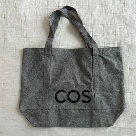 COS kangaskassi naisille mustassa värissä. Laukku on valmistettu kestävästä kankaasta ja siinä on pehmeä, muhkea rakenne. Sopii arkeen ja vapaa-aikaan käytettäväksi. Iso ja mahtuu paljon