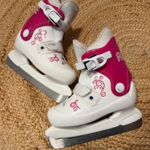 Myytävänä lasten valkoiset luistimet (ei kaunoluistimet). Käytettynä ostettu, mutta täysin ehjät ja terä hyvässä kunnossa (ei ruostetta).