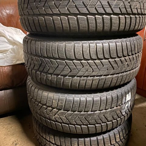 Hyvät Nokian Hakkapeliitta 5 -renkaat kohtuullisilla vanteilla. Pintaa erittäin hyvin, keskim. väh. 6mm. ET pitää vielä tarkistaa, kun en muista.