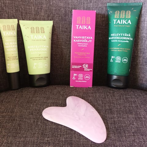 Saaren Taika Ecolution Hyaluronihappo & Matrixyl päivävoide sisältää hyaluronihappoa ja kasviperäisiä öljyjä, jotka kosteuttavat ihoa tehokkaasti sekä auttavat vähentämään juonteita. Muutaman kerran käytetty, joten uutta vastaava.