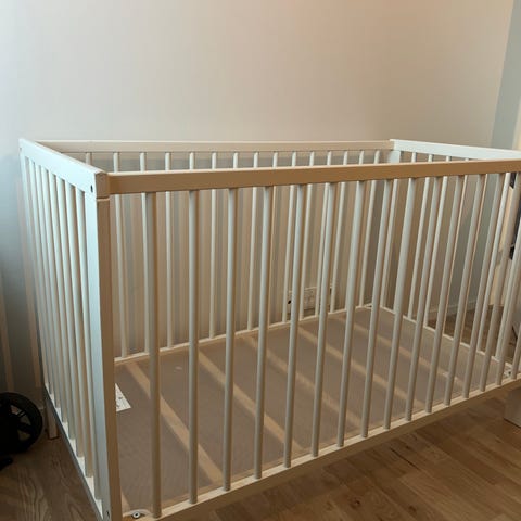 IKEA pinnasänky lastenhuoneeseen. Valkoinen väri ja puumateriaali. Soveltuu vauvan tai pienen lapsen nukkumiseen. Pohjan saa kahteen tasoon. Jonkin verran käytönjälkeä. Ollut taaperolla ja siksi nyt toinen laita irroitettuna.
