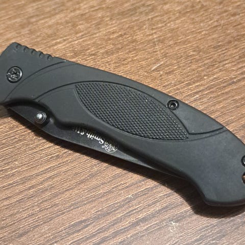 Käteen hyvin istuva, terävä puukko. Mukana tukeva muovituppi.