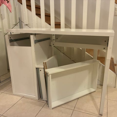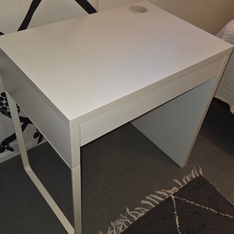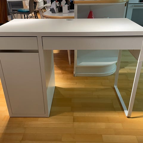 Myydään Micke kirjoitus/koulupöytä. Käytönjälkiä on, kaapin alempi sarana irti ovesta, ei ole haitannut käyttöä meillä. Hinta 10€