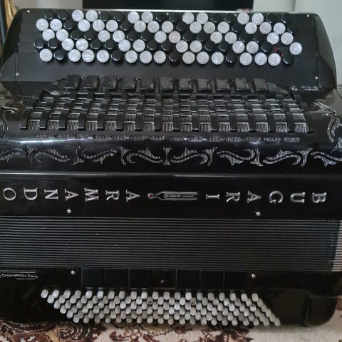 Accordiola super cassotto 5 rivinen ja 4-äänikertainen harmonikka. Kansainvälinen järjestelmä. Diskantissa 13 koplaria ja bassossa 5+1. Hienokuntoinen ollut kotona vähäisessä käytössä. Hyvä laukku. Korkea ikä vaatii luopumaan. Hieno ääninen.