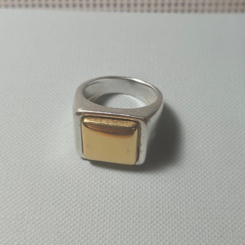 Hopeinen sormus Leimalla 925H. Nimileima KM. Koko - 16,50. Kaiverruksella.