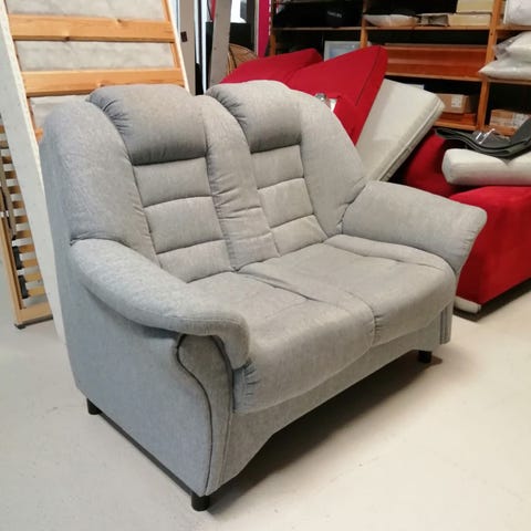 Sohvan kangas kulunut ja näkyy käytön jälkiä.